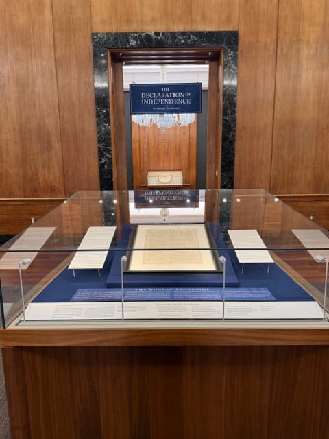 What I wasn’t prepared for, however, was, at this juncture with a new war just launched, entering the Lilly to face one of the 26 known copies of the first printing of the Declaration of Independence, known as the Dunlap Broadside. It is also what libraries can do – surprise us with a book, or document we weren’t expecting. I was awash with emotion about the history of that time, and our time today.